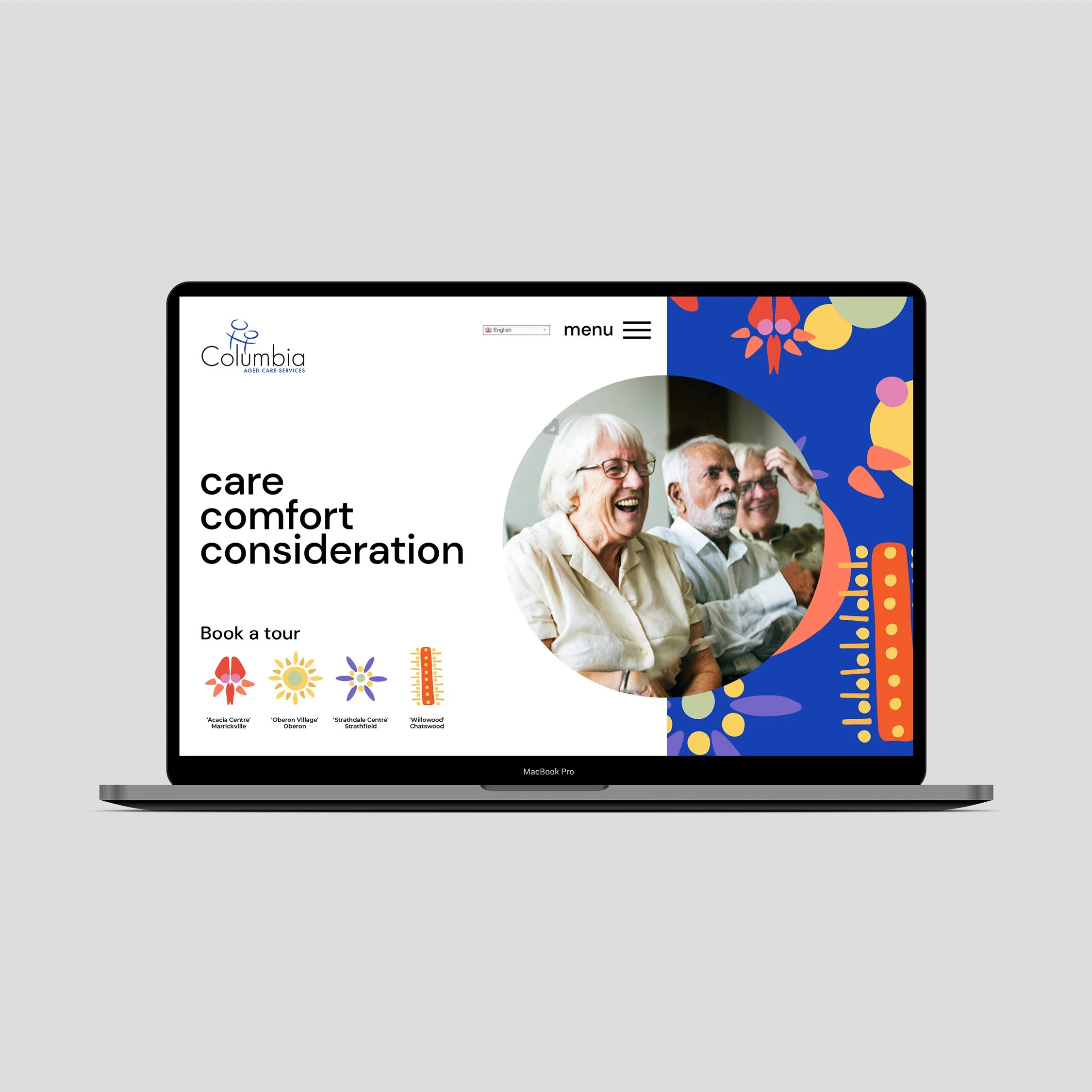 Columbia Aged Care has a progressive and contemporary approach to aged care. Situated in New South Wales, their homes are welcoming, bright and cheerful and their attentive staff ensure the highest quality of care for the residents. Columbia’s CEO wanted this approach to be reflected in their brand refresh and at every communication touchpoint – both to enable residents and as assurance for their families.
