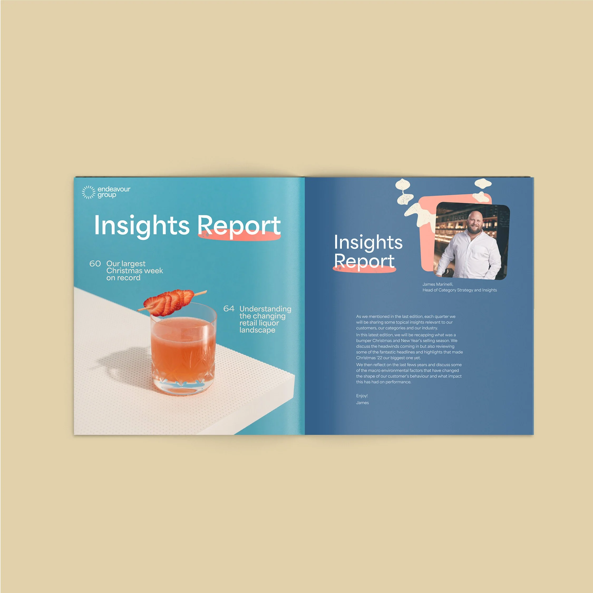 With a captive audience of hospitality and retail professionals, Distilled #8 was redesigned in late 2022 using Endeavour Group’s new brand assets to bring their industry insights to life with strong use of design, engaging written pieces, research and quality photography.