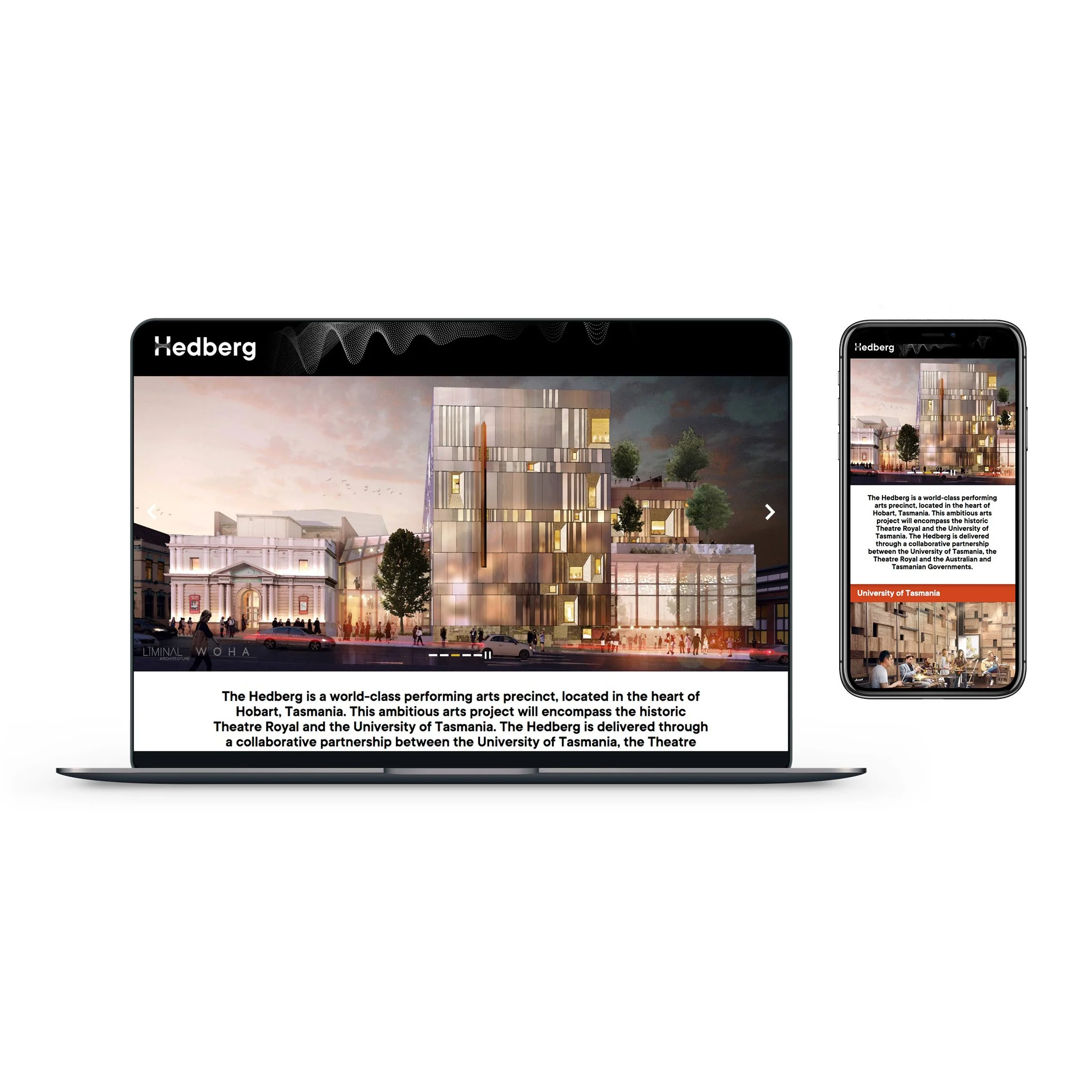 The Hedberg (housing the UTAS Conservatorium of Music and performance spaces for the Theatre Royal) is a world-class purpose built, performing arts precinct located in the heart of Hobart. This complex and long-running project involved a series of presentations and consultations to a diverse range of stakeholders – all with quite different expectations of the project. As Senior Designer on this project, my role was to comprehend and balance these expectations as well as meet and exceed the creative and pragmatic requirements of a complex brief. The result was a brand identity system with an inspiring creative concept, that was strong and robust enough to handle a myriad of contexts, platforms, audiences and applications.