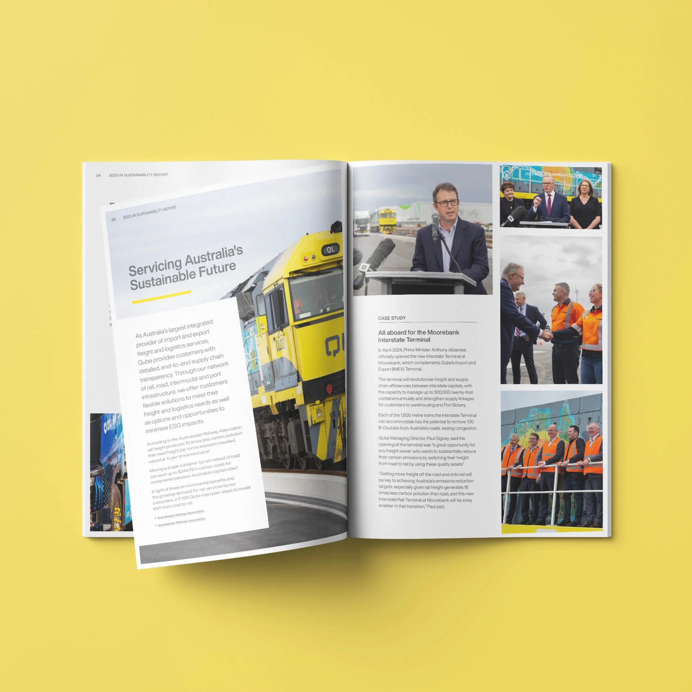 In 2024, they released their Sustainability Report. The FY24 Sustainability Report provides a summary of Qube’s sustainability strategy and performance on material sustainability issues, as well as Greenhouse Gas (GHG) Emissions data.