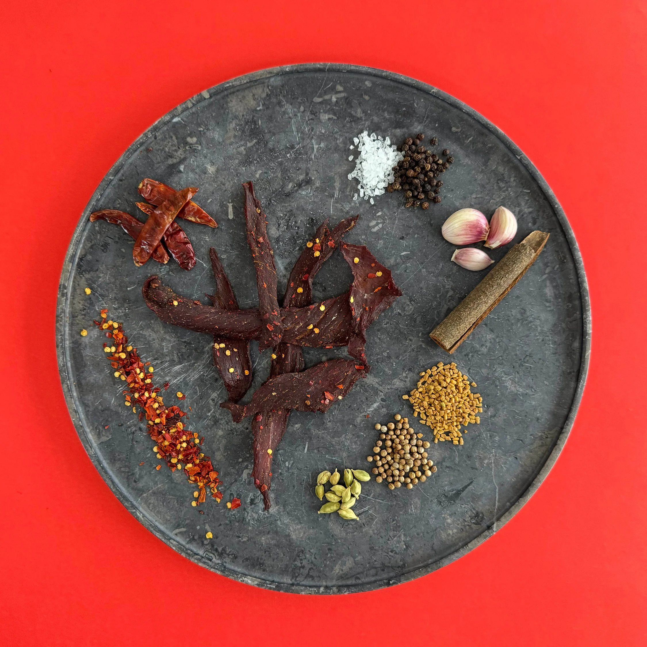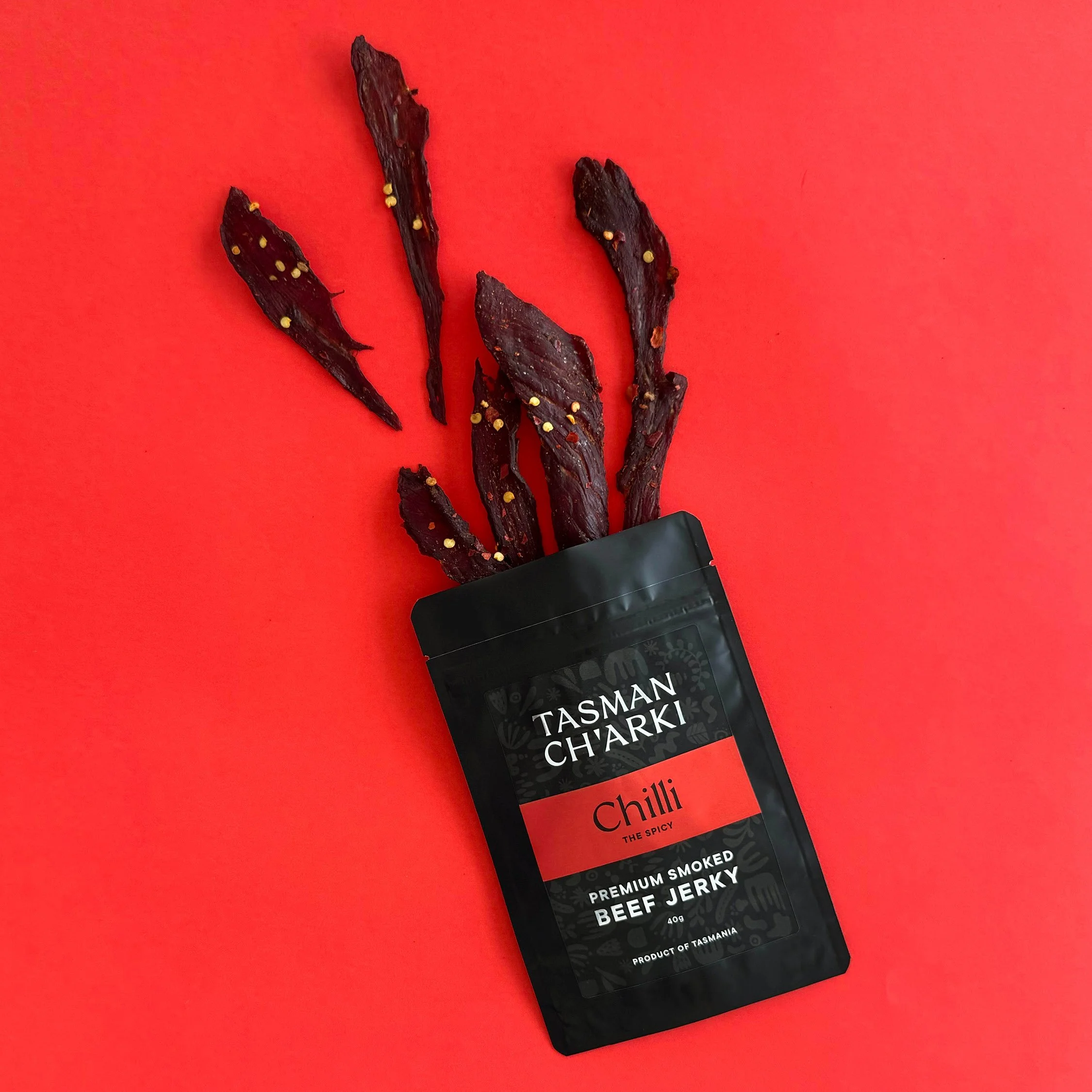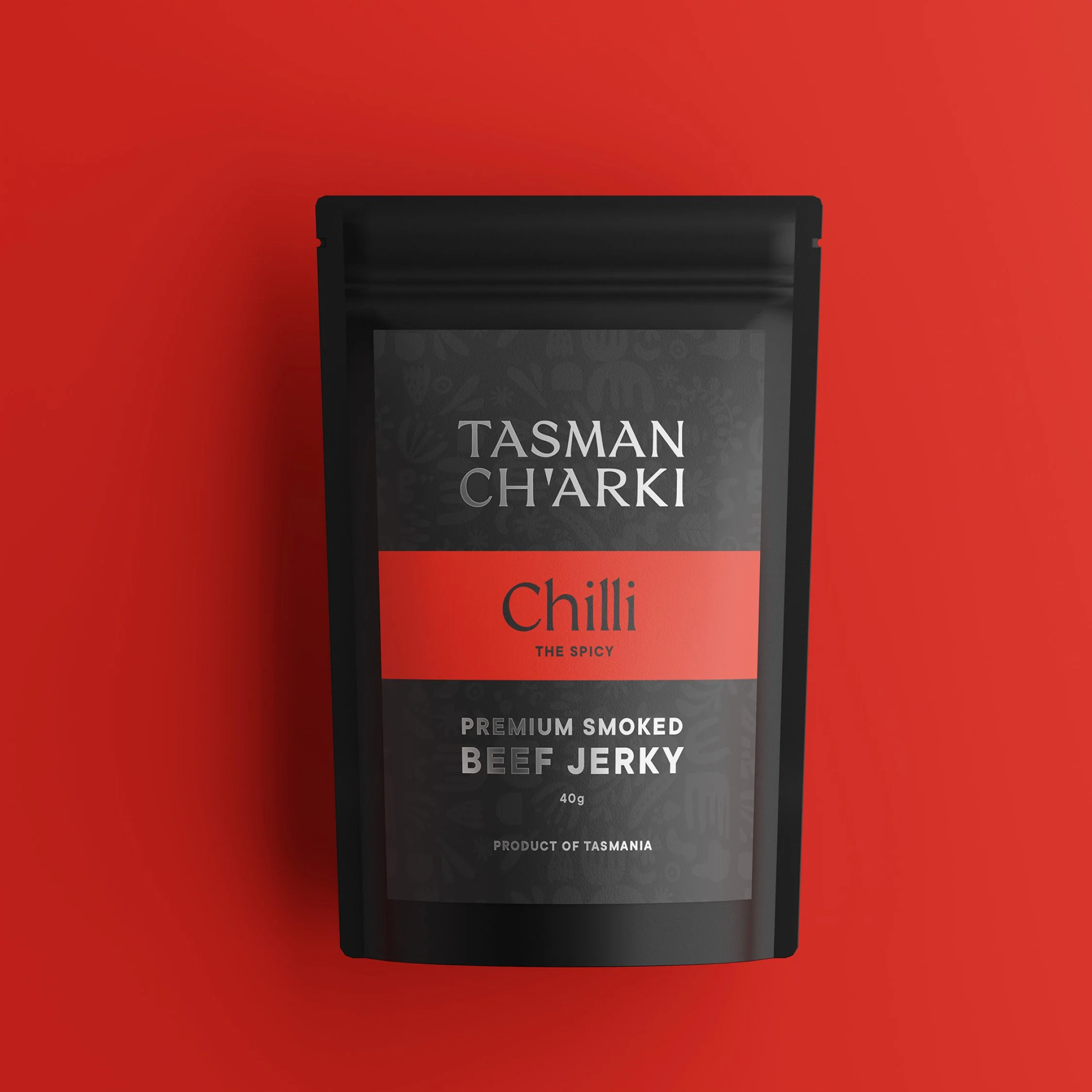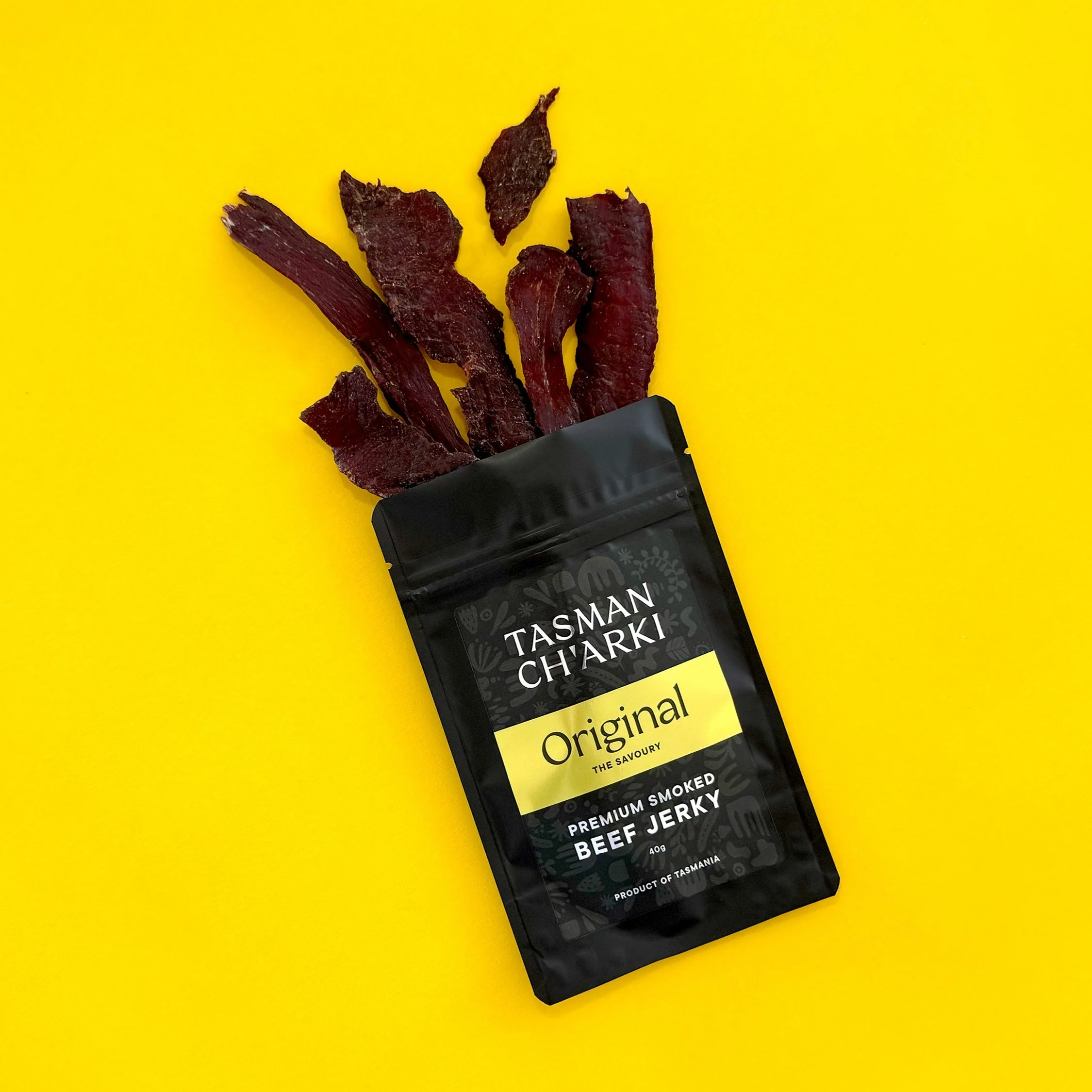 It’s not every day you get to be your own client! Co-founded by my very talented husband Mark, and myself, Tasman Ch’arki launched in late 2024 after years of experimentation and planning. Our premium Tasmanian made beef jerky has a unique flavour after hours of marinating, then carefully smoked for preservation and texture. Tasman Ch’arki’s name comes from the blending of Tasmanian ingredients and commitment to quality, and the Quechua word ch’arki (dried, salted meat.) Mark’s inspired and committed pursuit of a great product, and my background in design have allowed us to combine our skills to create some damn good jerky. (Well, we and a few others think so anyhow.) Thanks to Jarrod Lowe for writing some cool words that live on the website and our packaging. I still really like reading it.