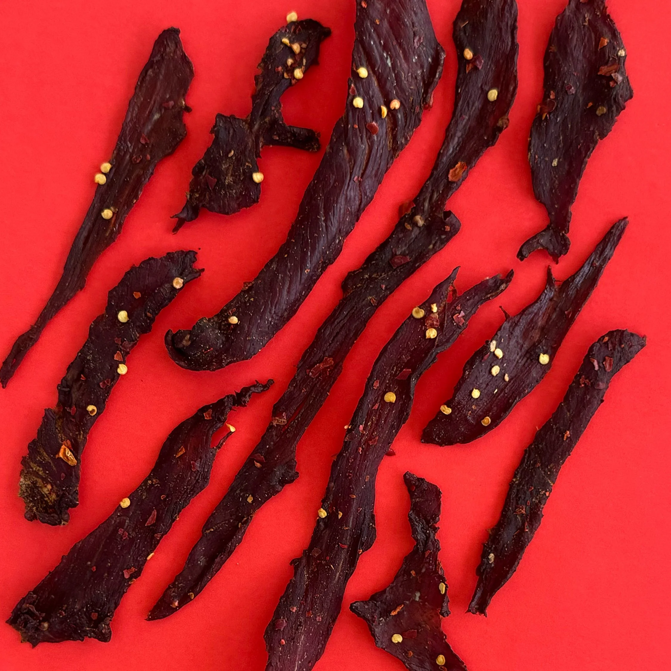 Chilli beef jerky packaging, label printing by Mercury Walch