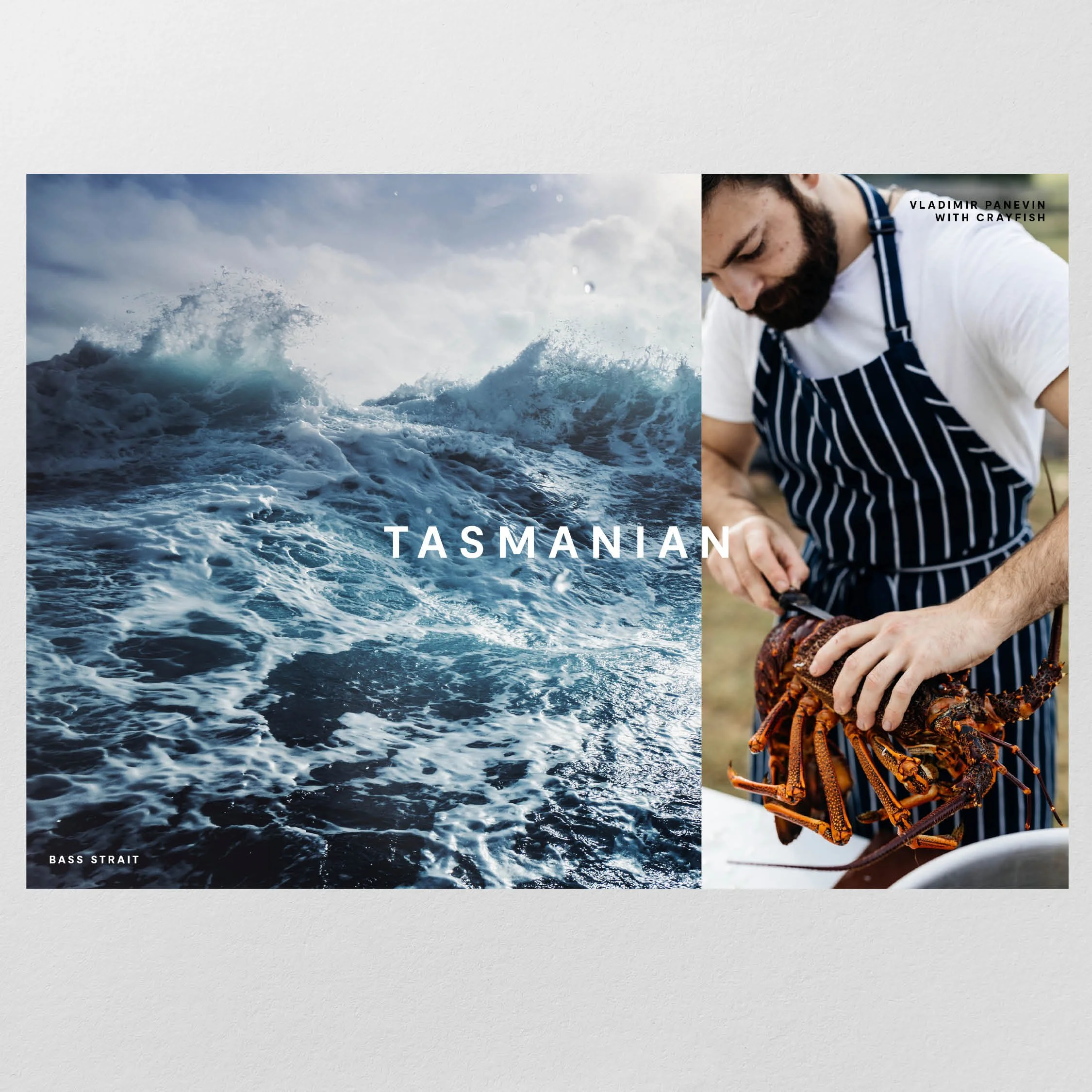 Photography plays an extremely important role in the project – in content, composition and style, but especially in potency. Representing a mixture of custom-shoots, privately negotiated acquisitions, the photographic selection and pairing required lengthy and careful knowledge of the people who create them and where and how they do it. This then set the visual tone for the project going forward as the TASMANIAN brand has been used by Tasmanian people, experiences, products and businesses.