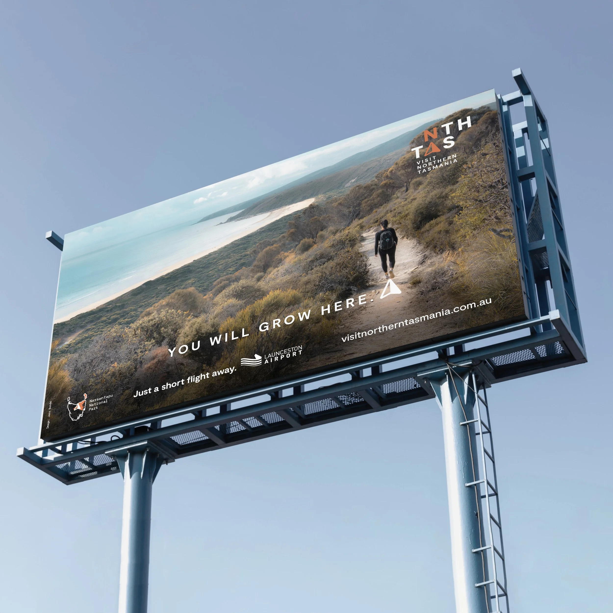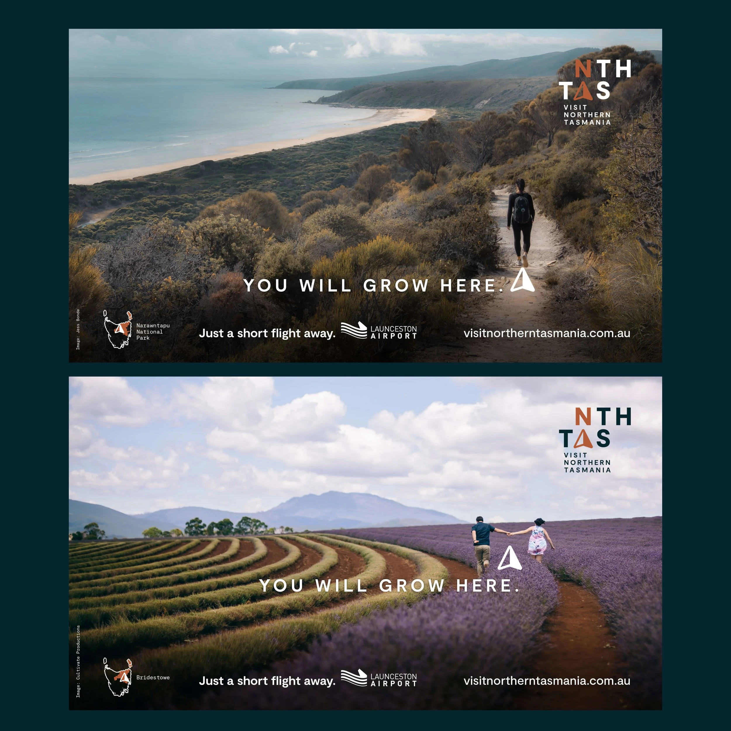 Celebrating connection to place, the Northern Tasmania logo is about ‘finding your bearings’. About finding the direction you want to take in life, or finding your ‘true north – the north is a place to find yourself. The logo also references destination abbreviations, and with a shifted alignment, the ‘A’ in TAS forms the compass pointer to north. The compass pointer also became an important campaign visual device, working in conjunction with the ‘See yourself here’ campaign line, allowing people to see themselves immersed in the experiences of Northern Tasmania.Visit Northern Tasmania was also designed to balance complementing, yet remaining distinct from Tourism Tasmania’s ‘Come Down for Air’ and ‘Tasmanian’ identities.