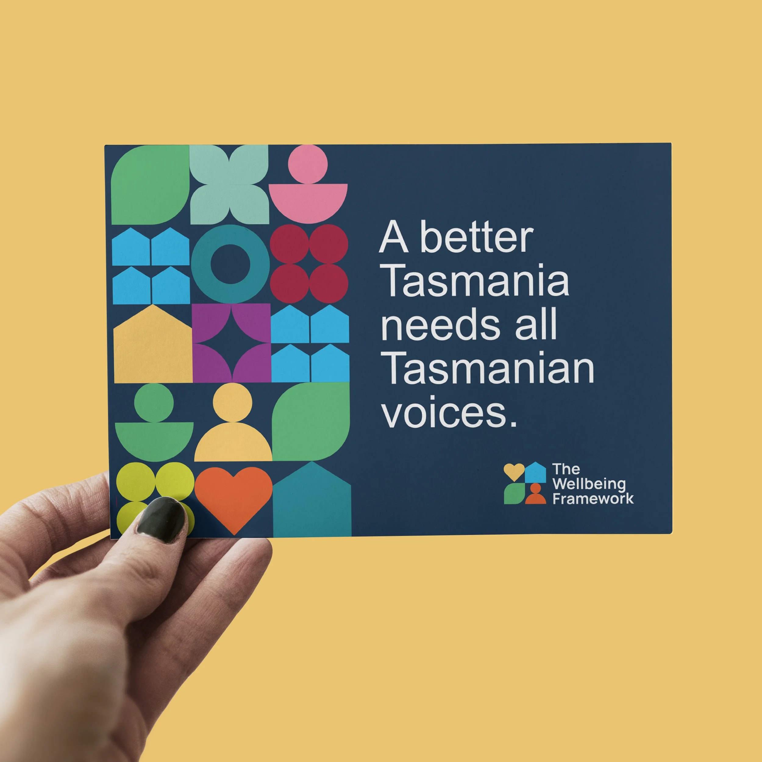 Inclusivity and diversity form the core idea of this identity. By taking a universal visual language approach, this creates a graphic device that speaks to all the genders, cultures, locations, ages, languages and backgrounds that make up the Tasmanian community.