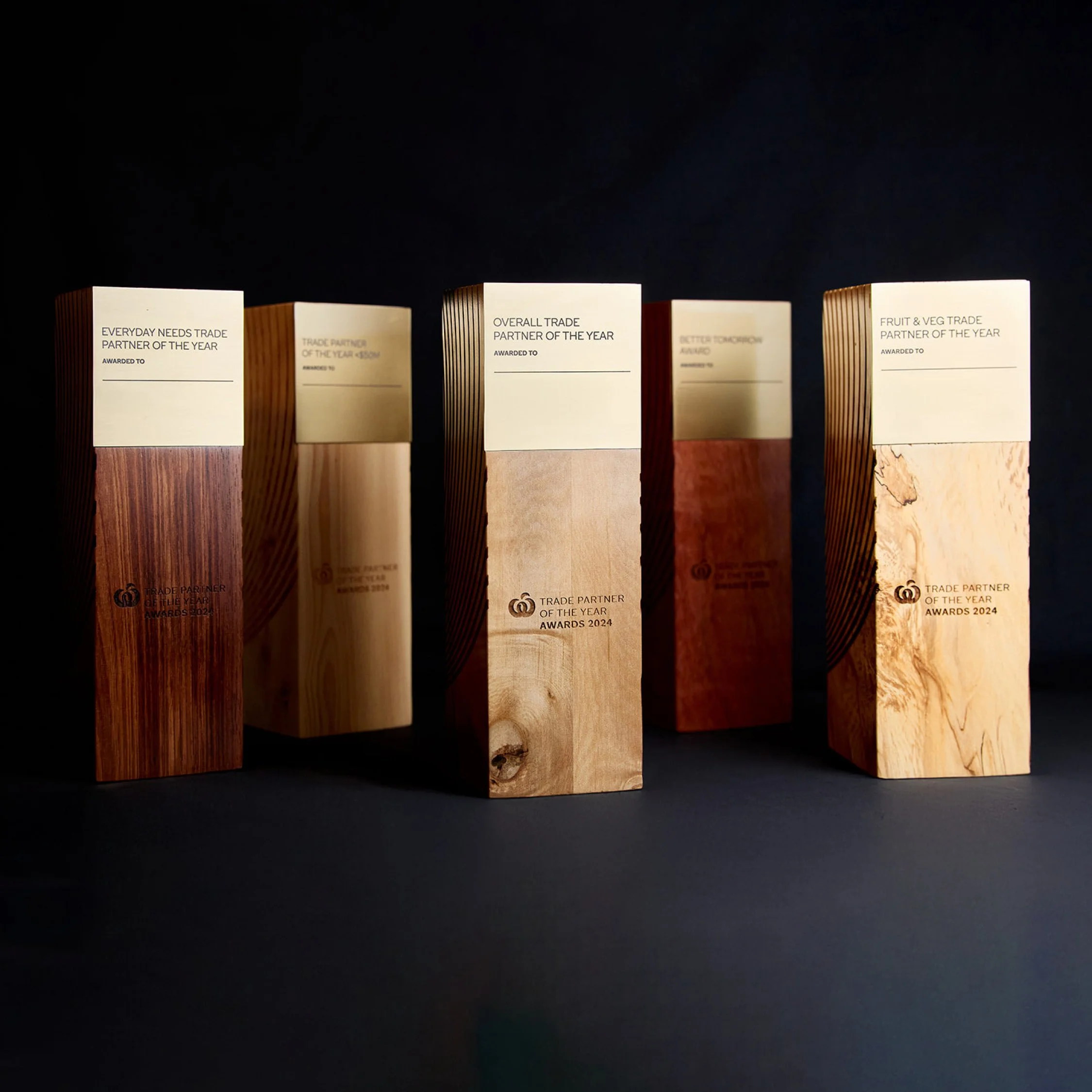 Also included in this project was the design of the award trophies. The trophies were handcrafted from Tasmanian hardwoods by the West Moonah Community Shed in Tasmania, a not-for-profit initiative associated with the West Moonah Neighbourhood House. The Community Shed offers a supportive and inclusive environment for people with disabilities, providing opportunities for personal development, skill-building, and social connection.